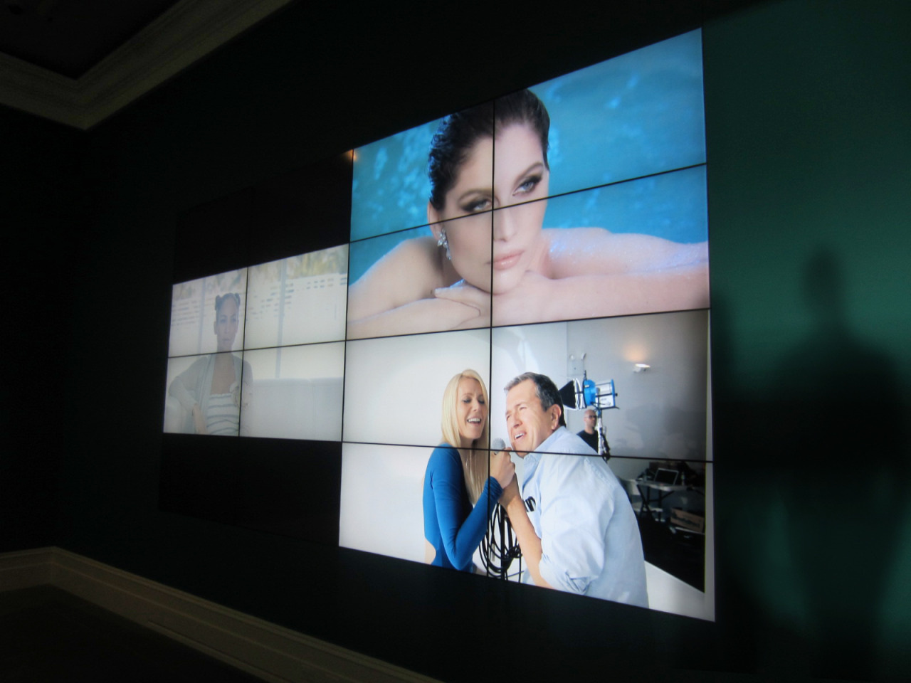 Video wall montage with - 16x LCD montiors connected into a big video wall showing Marios work and life.